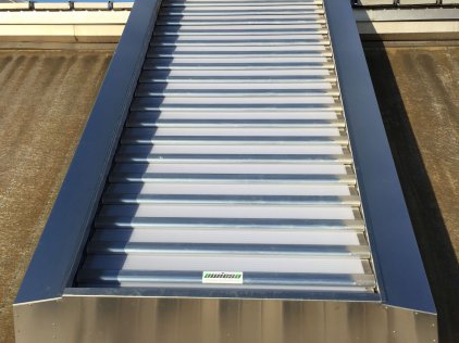 Er ist der einzige zugelassene Mehrzwecklüfter für den Einbau in geneigten Lagen wie beispielsweise beim Sheddach bis hin zum horizontalen Einbau. Der MULTIJET kann in Breiten- und definierten Längenabmessungen bis zu einer Größe von 1926 x 2966 mm hergestellt werden.